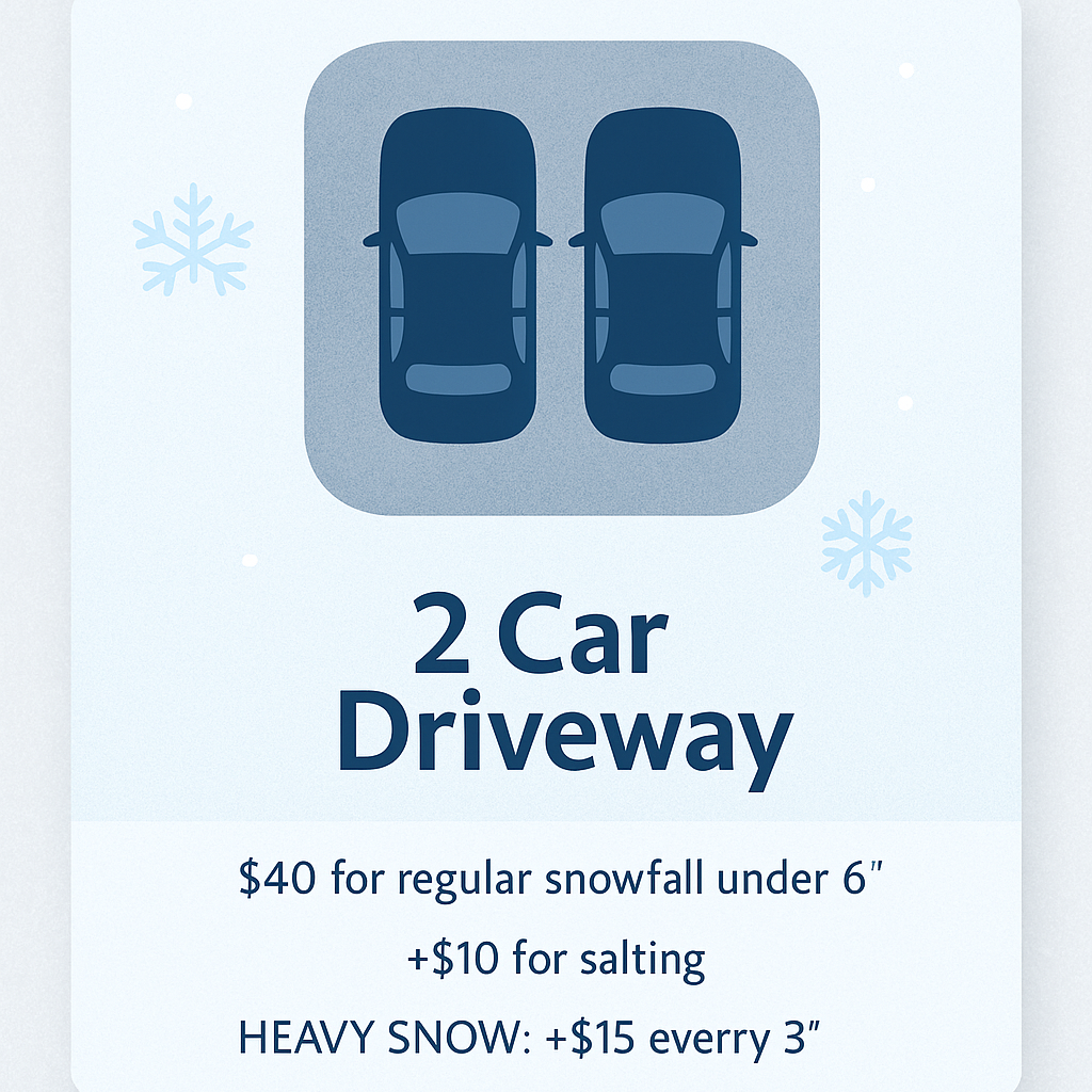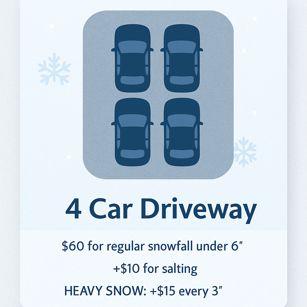 *Pricing Above Is For Fresh Snow Only. Old Snow Or Frozen Snow Require Extra Labor & Subject To Additional Charges*